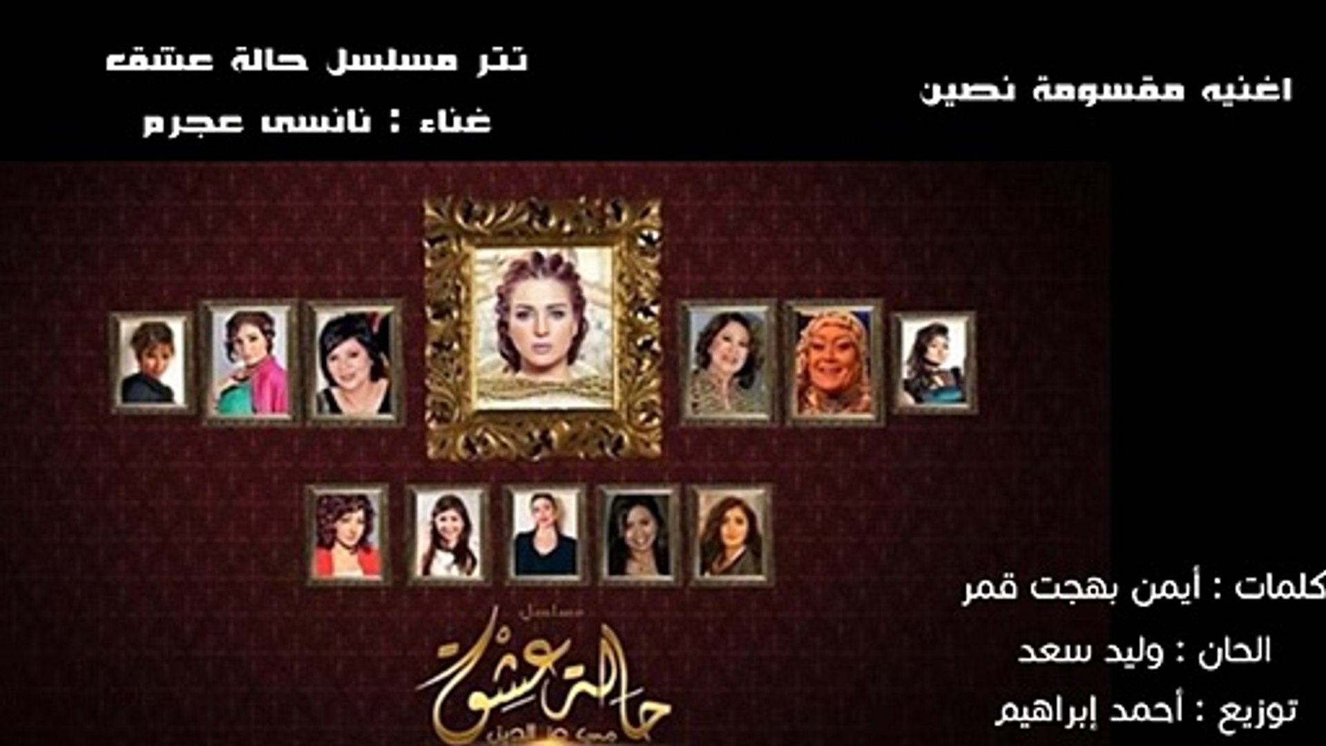 كلمات اغنية نانسي عجرم مقسومة نصين تتر بداية مسلسل حالة عشق. مقسومه نصين غناء. نانسي عجرم تتر مسلسل حالة عشق مقسومة نصين أنا زيي زي حاجات كثير متقسمة على اثنين مقسومة. اغاني نانسي عجرم منوعات مقسومة نصين.
