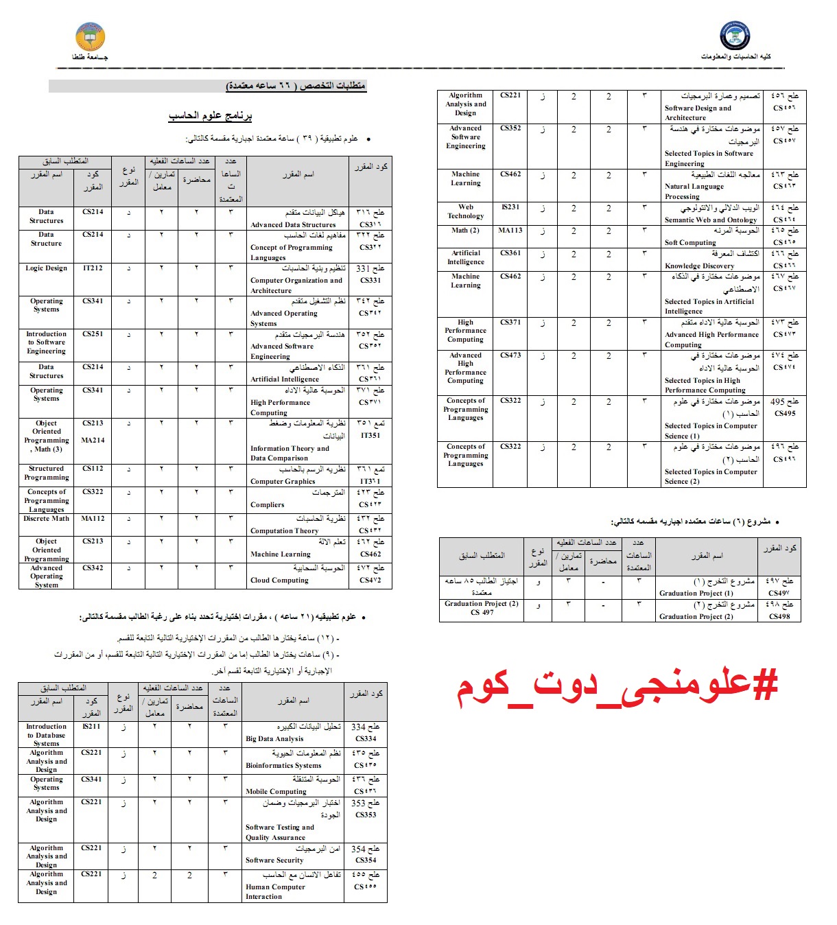 اقسام كلية حاسبات ومعلومات جامعة المنصورة