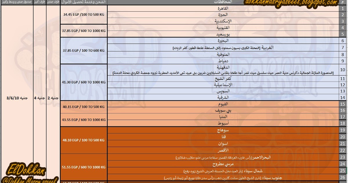 كشف اسعار البريد السريع المصرى الاسعار الجديدة منتدى فتكات