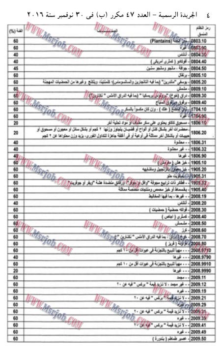 قرار رئيس الجمهورية مصر العربية رقم 538 لسنة 2016 بزيادة الجمارك بنسبة تصل 60