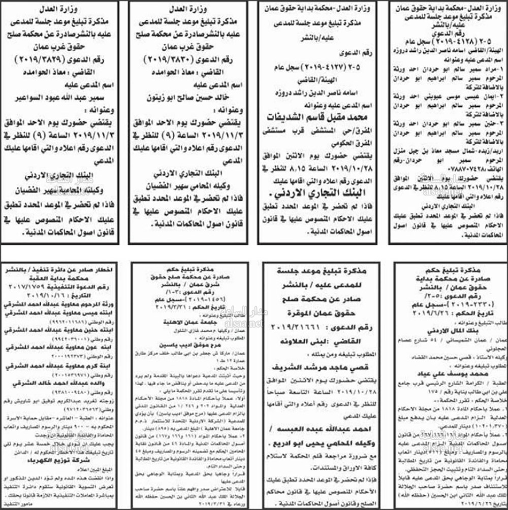مطلوبون لمراجعة محاكم البداية في المملكة اسماء صحيفة الرأي