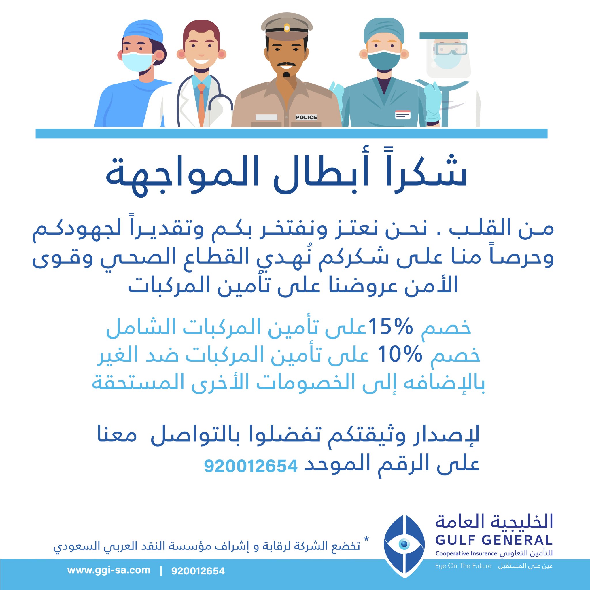 الخليجية للتأمين On Twitter شكرا أبطال المواجهة أبطال الصحة و ابطال الامن نحن دائما معكم اتصل بنا الآن على الرقم الموحد 920012654 أو سجل بياناتك في الرابط لنتمكن من التواصل معك والحصول على الخصم