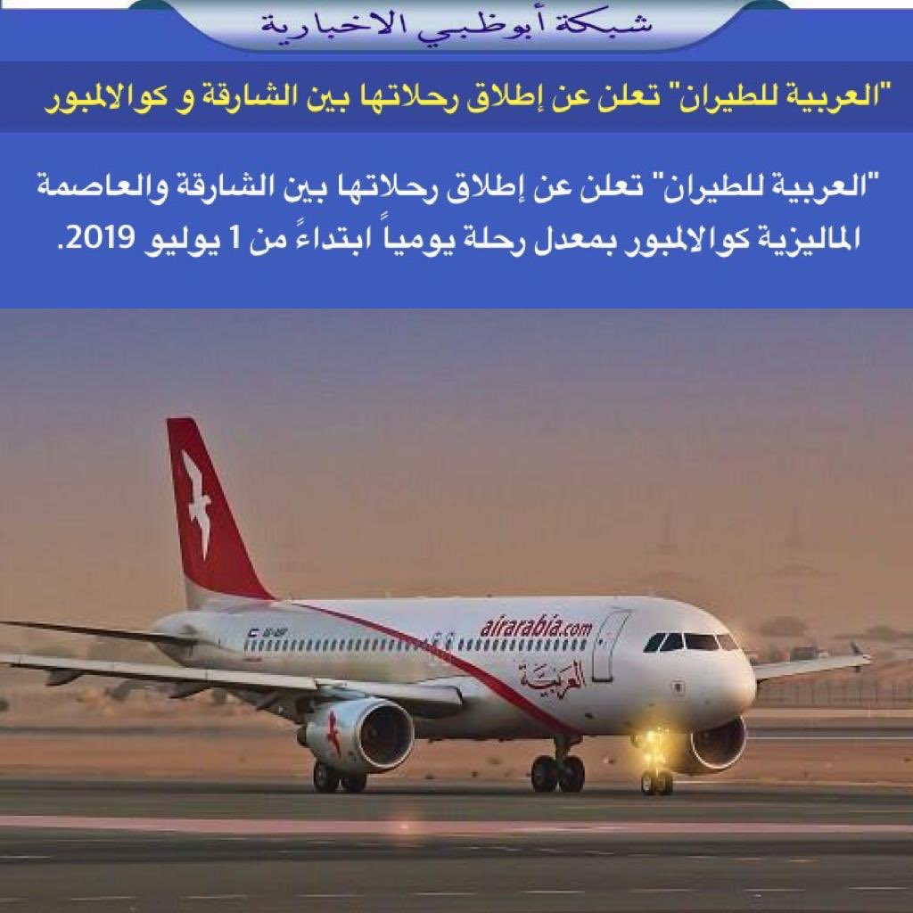 شبكة أبوظبي On Twitter العربية للطيران تعلن عن إطلاق رحلاتها بين الشارقة والعاصمة الماليزية كوالالمبور بمعدل رحلة يوميا ابتداء من 1 يوليو 2019 Https T Co Y7wpd6wrzo