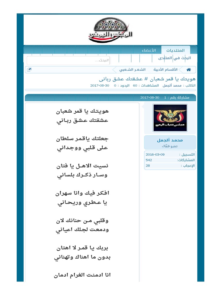 هويتك يا قمر شعبان عشقتك عشق رباني المجلس اليمني Pdf