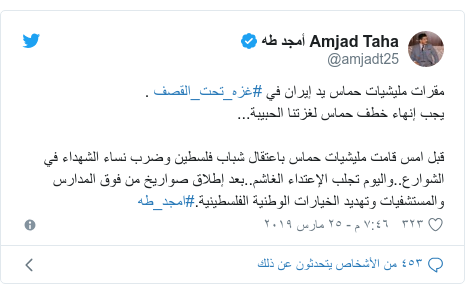أمجد طه يطالب الفلسطينين بالتظاهر ضد أنصار قاسم سليماني