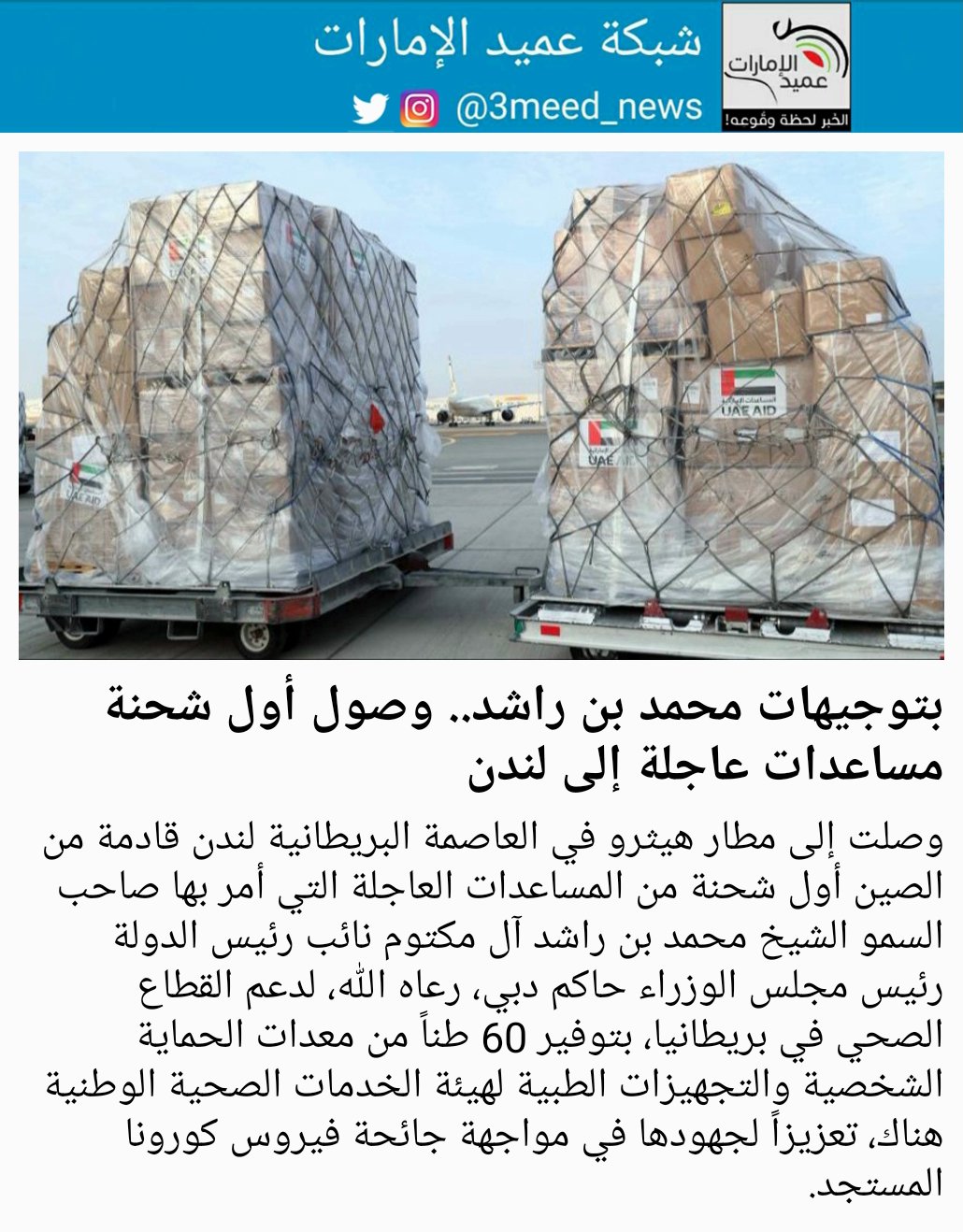 شبكة عميد الإمارات Na Twitteru بتوجيهات محمد بن راشد وصول أول شحنة مساعدات عاجلة إلى لندن عميد الامارات